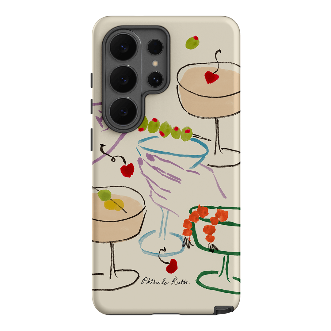Transform your phone into a vibrant work of art with the Cosmopolitan Dreams phone case, an exquisite design by Phthalo Ruth. Featuring a whimsical medley of multicoloured martinis garnished with olives, pink cosmos, and a cheeky shrimp cocktail, this case is a celebration of fun, flavour, and flair.