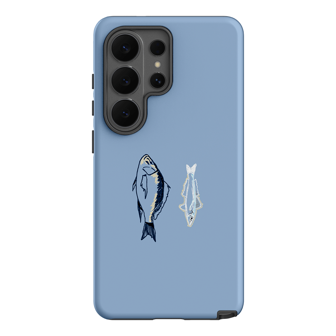 Celebrate family memories with the Fisherman phone case by artist Ryhia. This light blue case features two beautifully illustrated fish – whiting and snapper – inspired by the ones her dad caught while growing up in Palm Beach. Crafted for durability and lightweight protection, this phone case not only safeguards your device but also tells a personal, meaningful story. Perfect for art lovers, the Fisherman case blends nature, nostalgia, and style into a functional accessory.