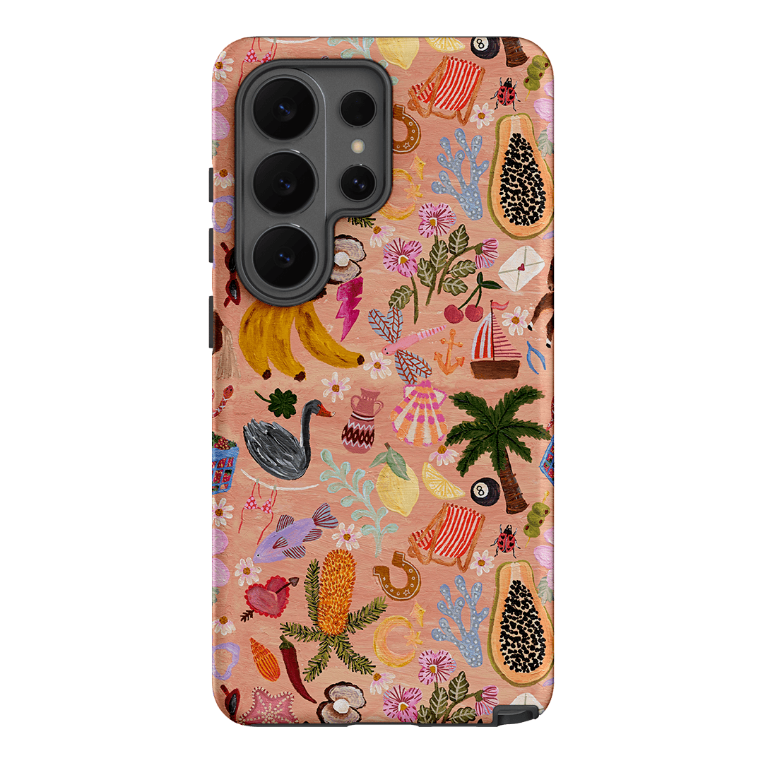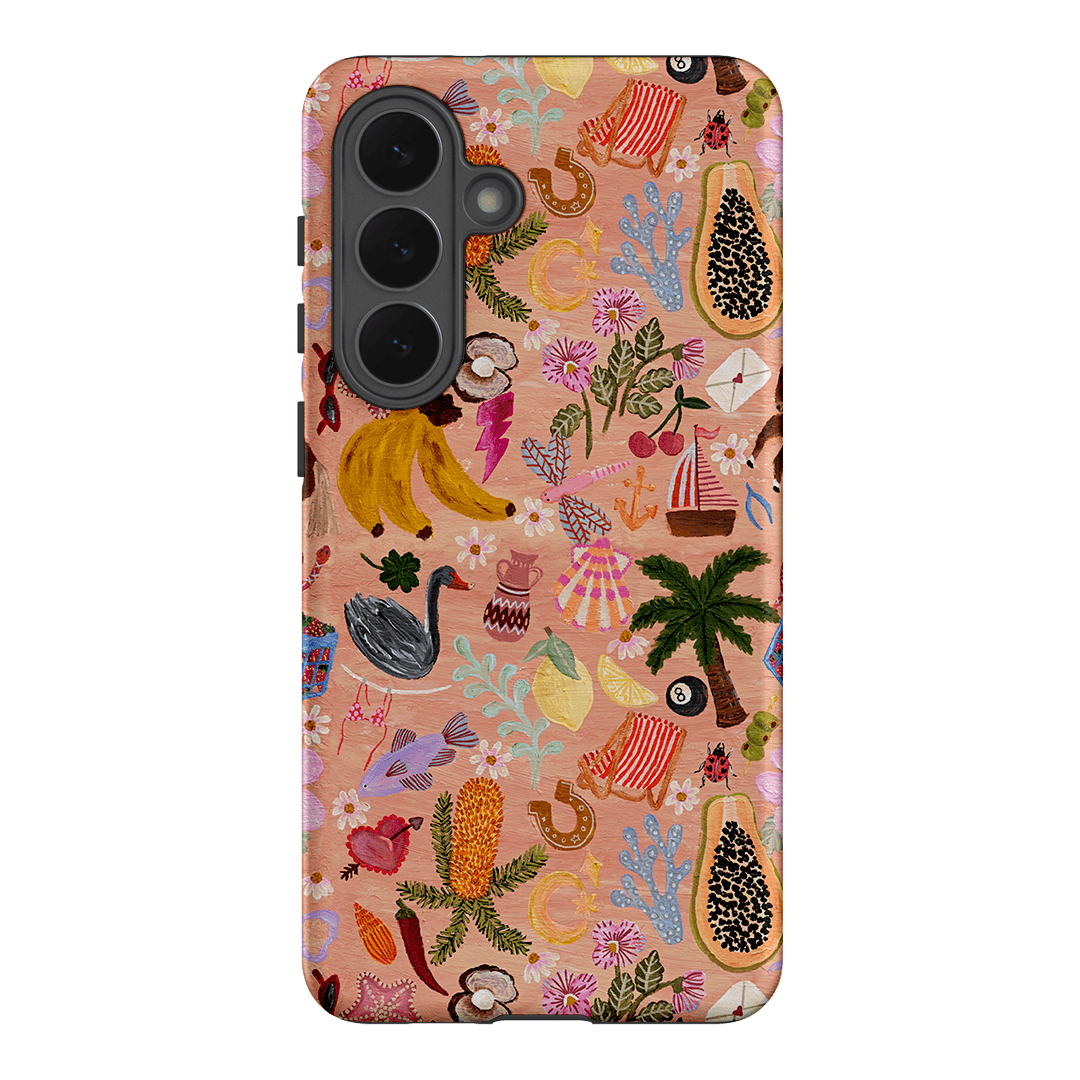 This phone case is basically your own little souvenir shop but far chicer and without the sand stuck in your shoes. Across its playful design, you’ll spot tropical fruits, seashells, and a few cheeky good luck charms tucked in for extra magic. It’s like a holiday snapshot you don’t have to upload, a mini escape right in the palm of your hand.
