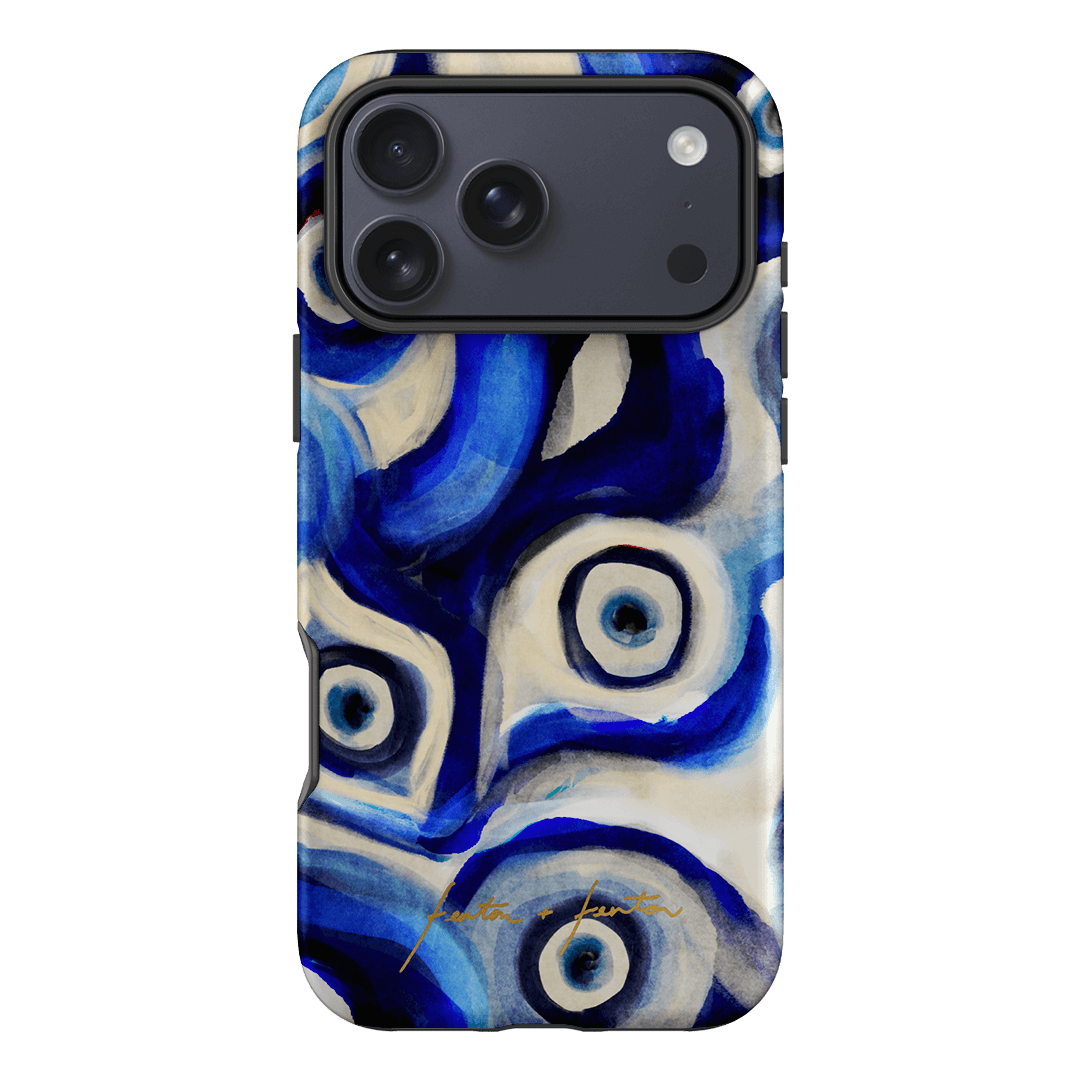 Introducing the Mati phone case, a blue evil eye pattern case that's perfect for your iPhone, Samsung Galaxy or Google Pixel phone. Crafted using our patented printing process, we've seamlessly embedded this striking design into the layers of a robust polycarbonate case. Choose between the lightweight and chic Snap case for a fashion-forward look or opt for the ultra-durable and protective Armoured case to safeguard your device with flair. Elevate your phone's aesthetics while ensuring top-notch protection with this unique accessory.